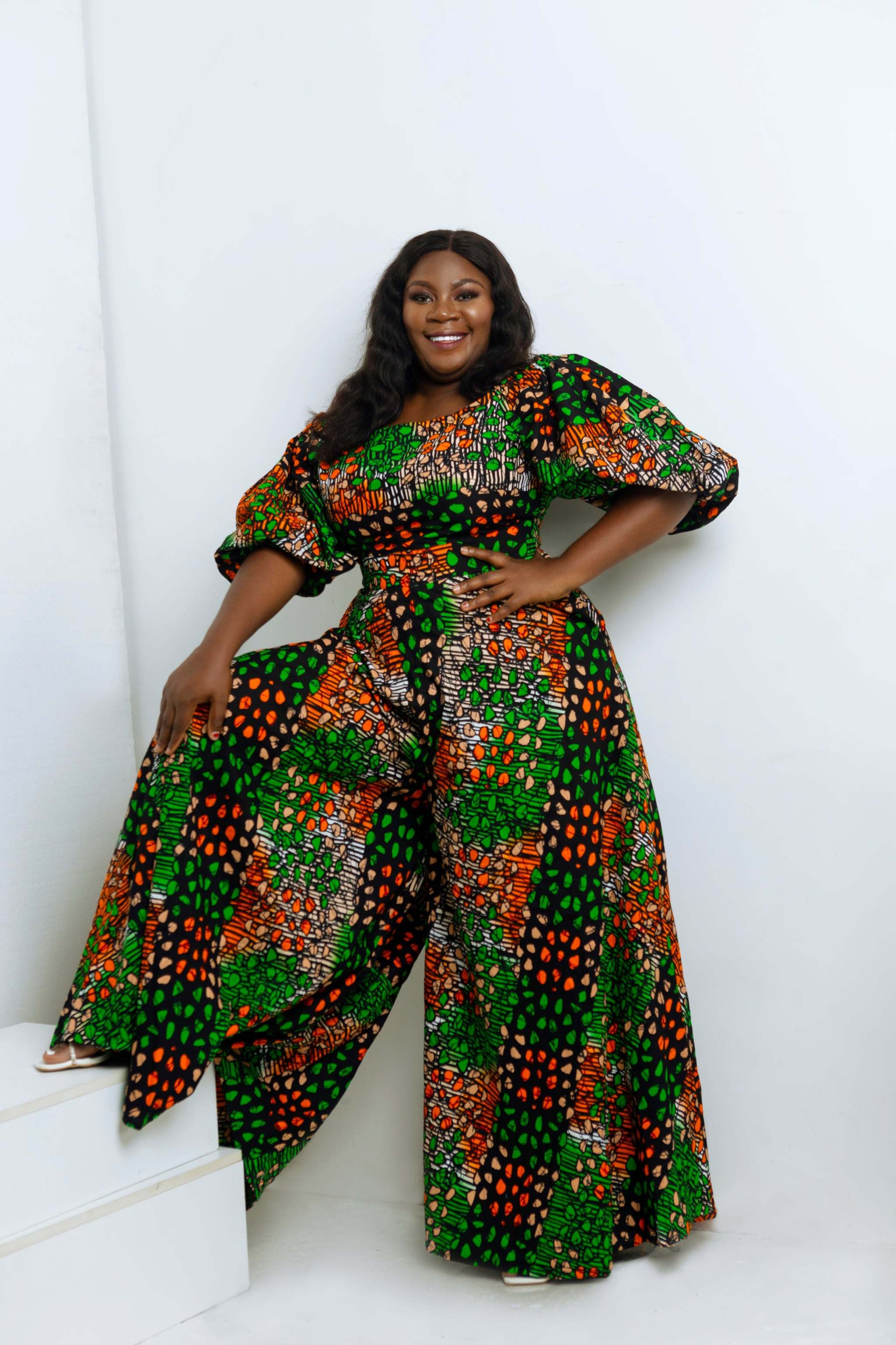 Let ANJIE AFRICAN PRINT WIDE LEG PALAZZO JUMPSUIT be your choice to making a statement .