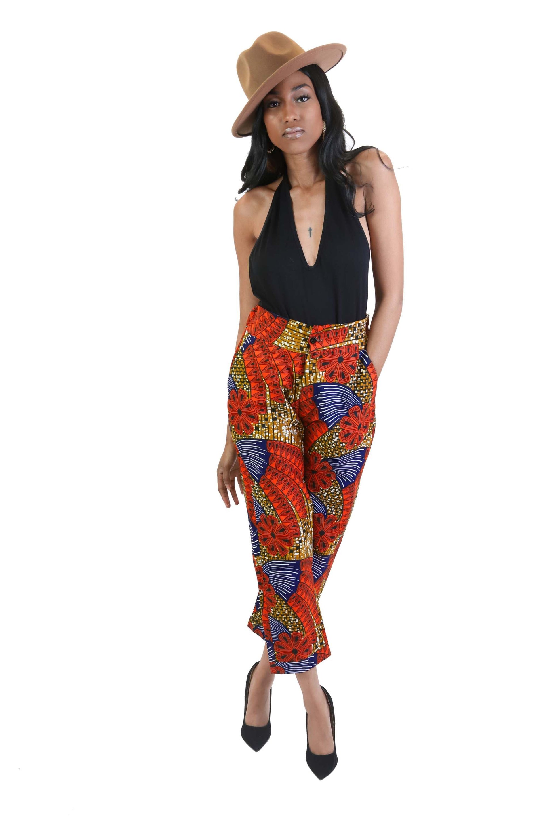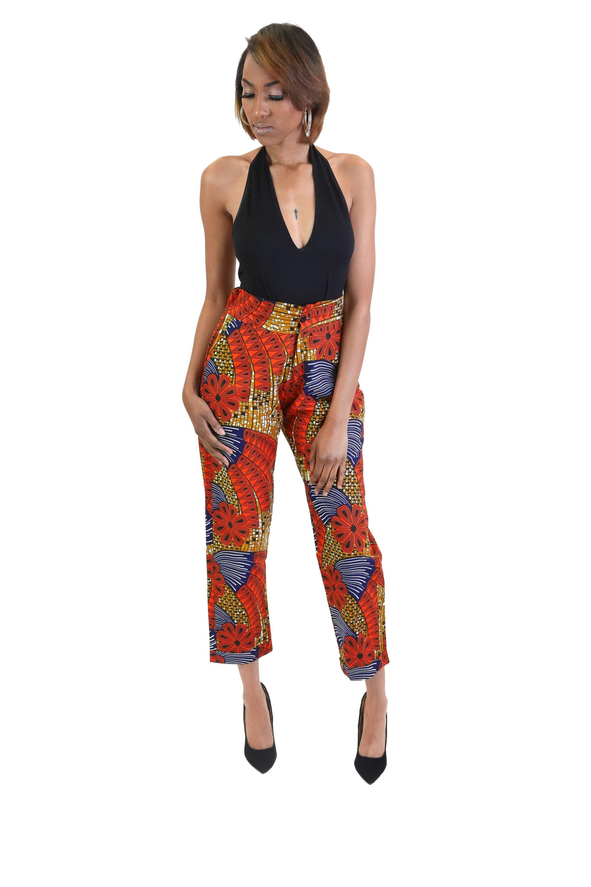 The stunning ADEOLA AFRICAN PRINT PANT in warm red and blue would make you stand out everywhere.