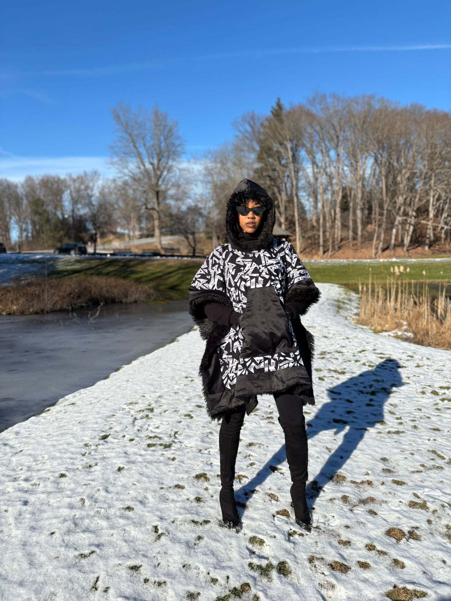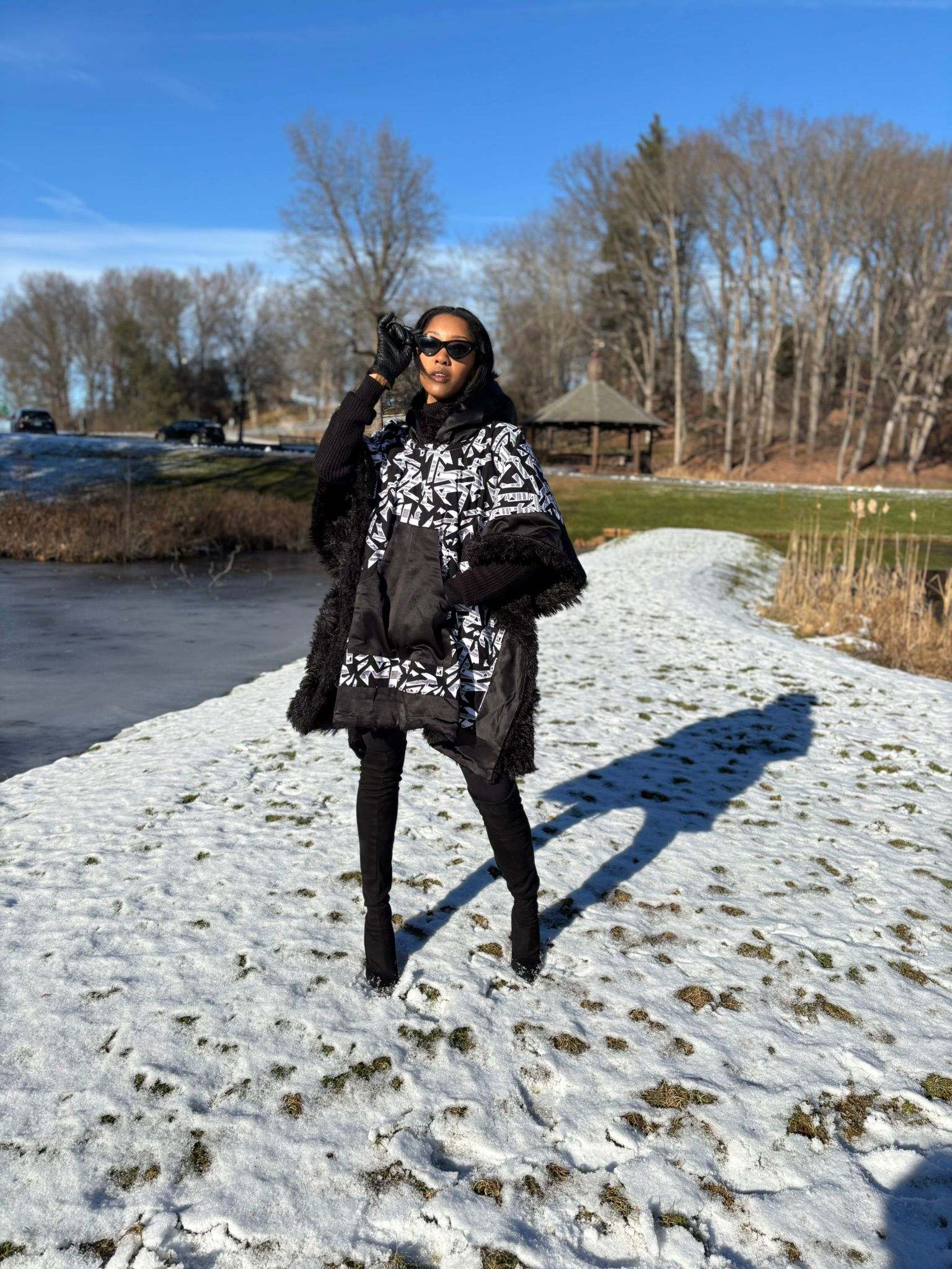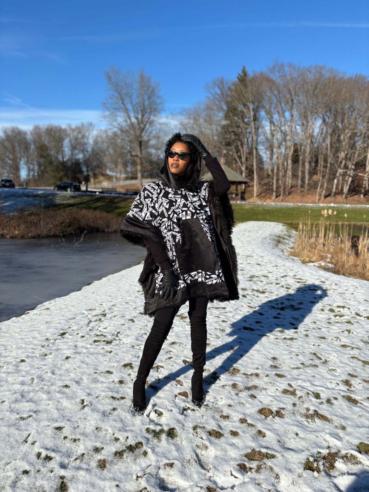 The faux fur lining ensures ultimate warmth, making this African Winter Poncho a must-have for any wardrobe. Wrap yourself in the elegance of the African Winter season!
