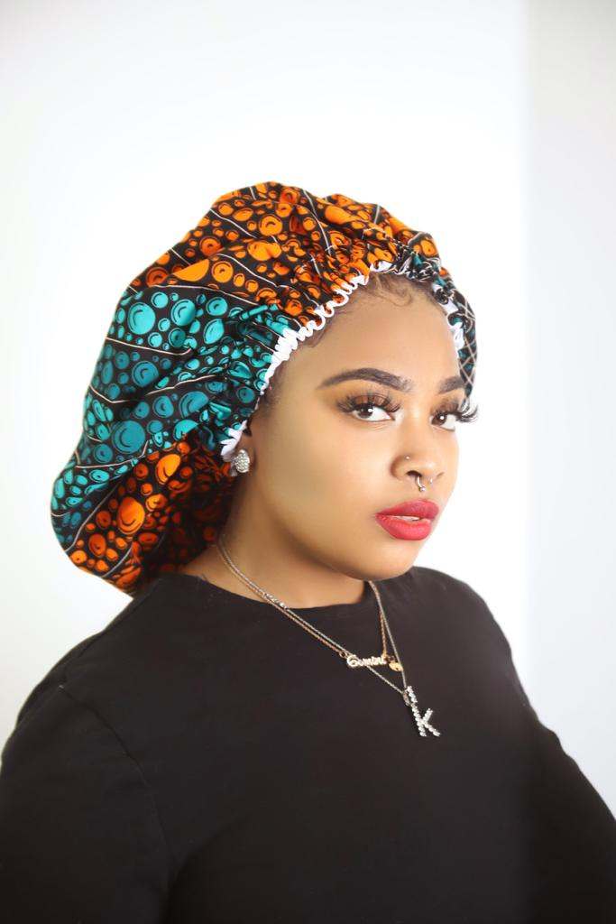 Ankara Satin Lined hair bonnets have been handcrafted with the finest quality of Ankara fabric and Satin to protect your natural hair or extensions. You can still keep it super stylish and sexy even when going to sleep with our Satin Lined Ankara fabric bonnets.