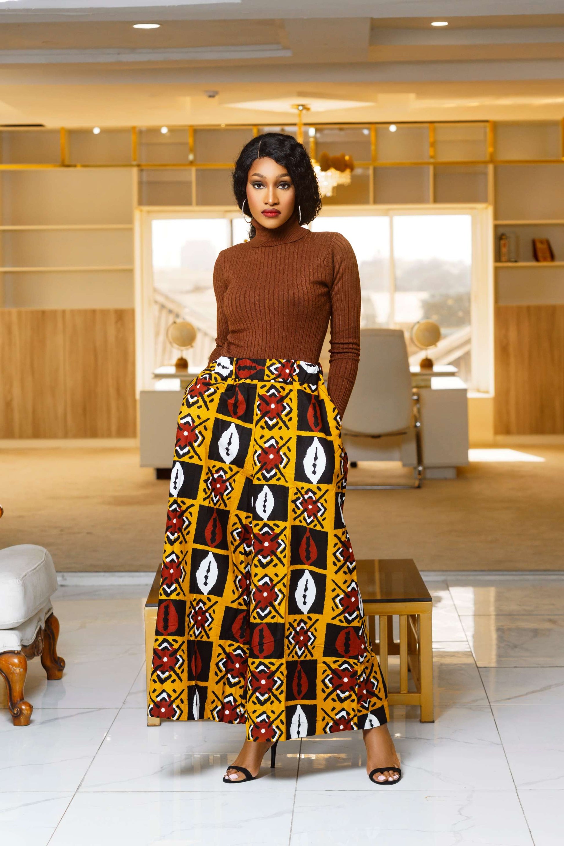 Show up and show off in MATILDA AFRICAN PRINT WIDE LEG PANT.