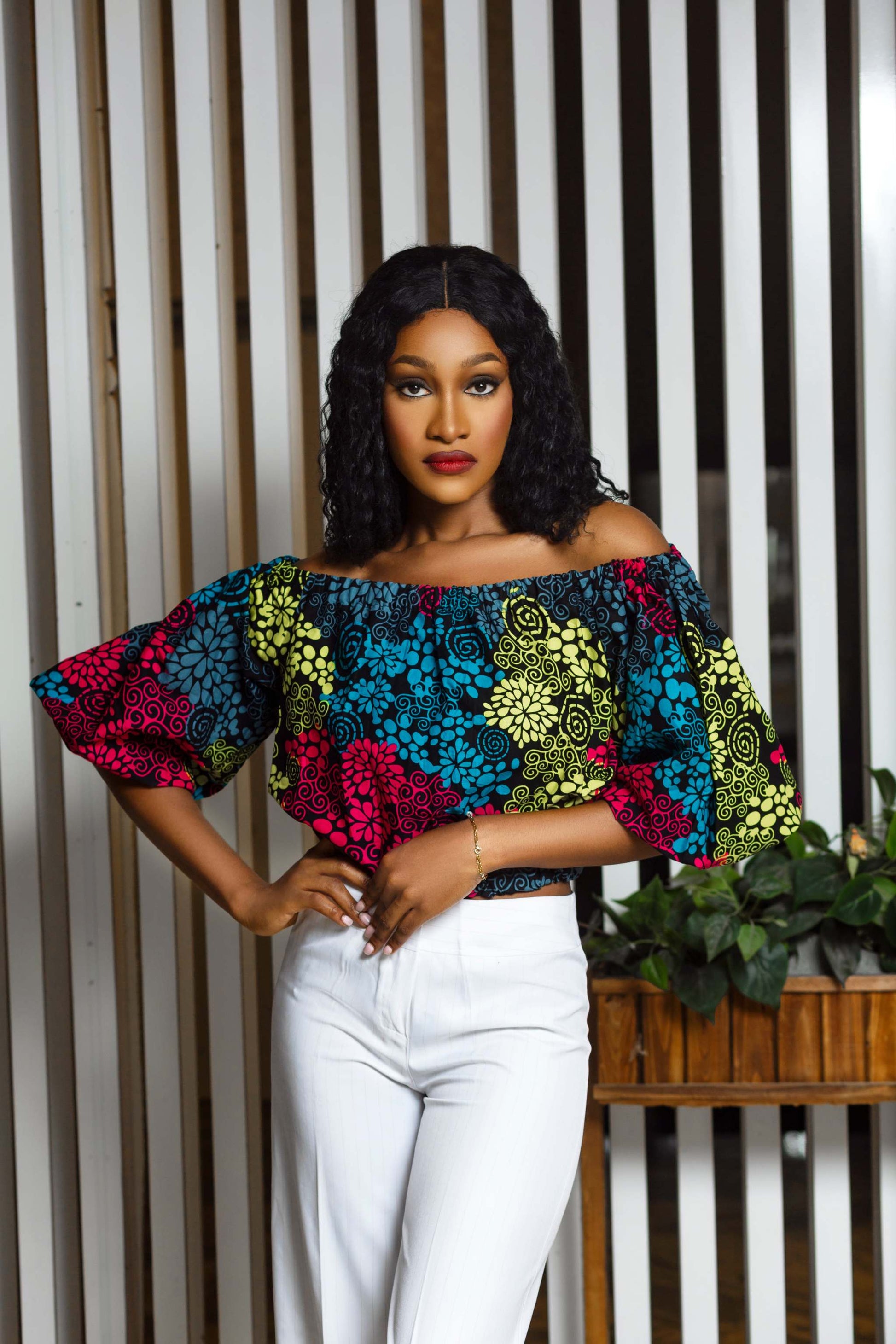 Sophisticated and simplicity in one look is what RHEMI AFRICAN PRINT CROPPED TOP stands for.